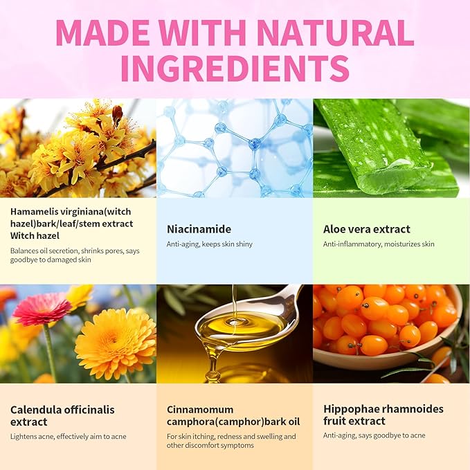 - Natural and gentle formula: The acne essence contains Hyaluronic acid, Eucalyptus globulus leaf oil, Aloe barbadensis extract and a variety of other natural active ingredients. Allergy tested, no burning sensation, balances oil levels, and gently deal with acne