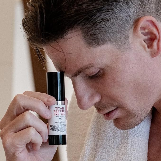 Titan Mens Eye Cream Anti Aging Bags & Dark Circle - Eye Bags Treatment for Men, High Potency Cooling Eye Gel Puffy Eyes Treatment for Men, Peptides, DMAE, MSM, Aloe, Unscented, 0.5 Fl Oz