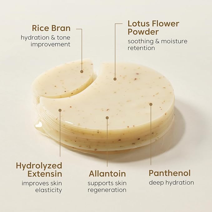 - Vitality & Elasticity with Natural Ingredients: Infused with rice bran and lotus flower powder, these patches improve skin elasticity and vitality, leaving the under-eye area glowy and rejuvenated.