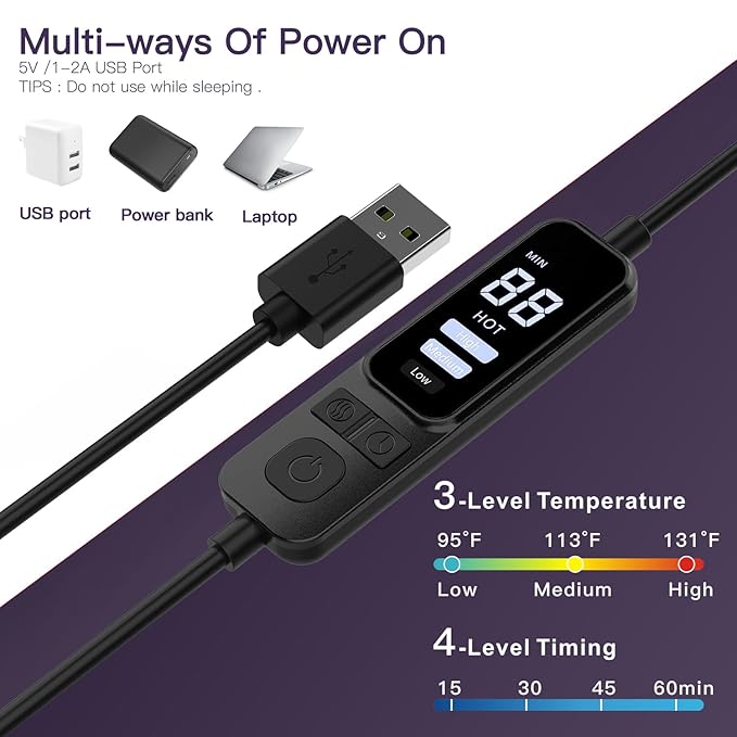 - Easy to supply power: The dry eye mask has a USB power cable, so it is compatible with regular 5V/1-2A USB adapter (not included). You could easily powered by power banks, laptops, wall chargers, and even car chargers. It is packed with a small box, perfect carry it for home, office, or travel use