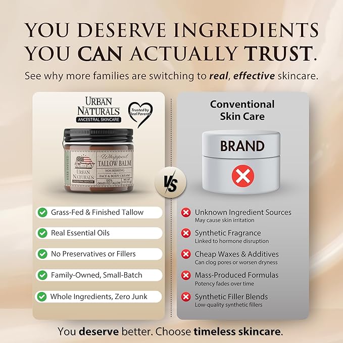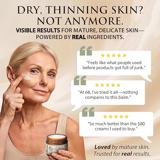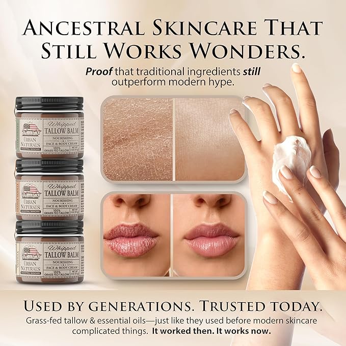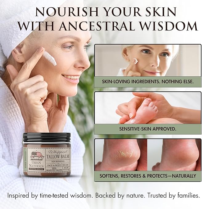 - GRANDMA KNEW BEST: Tallow—once a staple in traditional skincare—was the original moisturizer our ancestors relied on to soften, protect, and rejuvenate their skin. This whipped beef tallow cream honors that time-tested ritual with a light, meltable texture you’ll reach for daily.