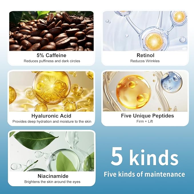 - 【Multi-Action Eye Repair - Brightens and Firms 】:Caffeine and peptides deeply repair and firm the eye area, reducing dark circles by 30% in 28 days. Retinol targets collagen loss, smooths fine lines and dark circles, and improves eye bags. This eye cream revitalizes and brightens, keeping your eyes fresh and bright all day long!
