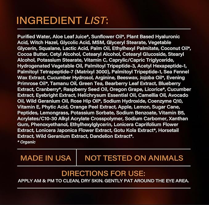 - Organic Green Tea & Eyebright Extract provide anti-inflammatory benefits and help to revitalize tired eyes.