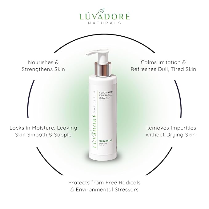 - Soothing and Calming Effect: The Lúvadoré Naturals SuperGreens Kale natural face wash effectively cleanses the skin while preventing excessive drying. Chamomile extract and aloe vera juice help soothe and prevent irritations, while cucumber fruit extract helps reduce puffiness and revitalizes tired looking skin.