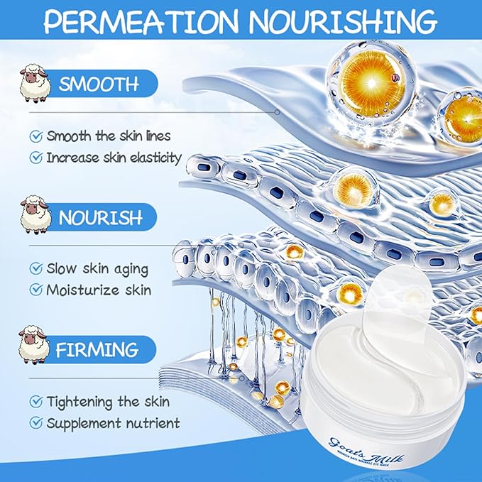 - 【Target Dark Circles & Puffy Eyes】 These under eye patches are infused with potent ingredients like Goat Milk Extract and Hydrolyzed Elastin to visibly reduce dark circles, diminish puffiness, and rejuvenate tired eyes for a refreshed, youthful look.