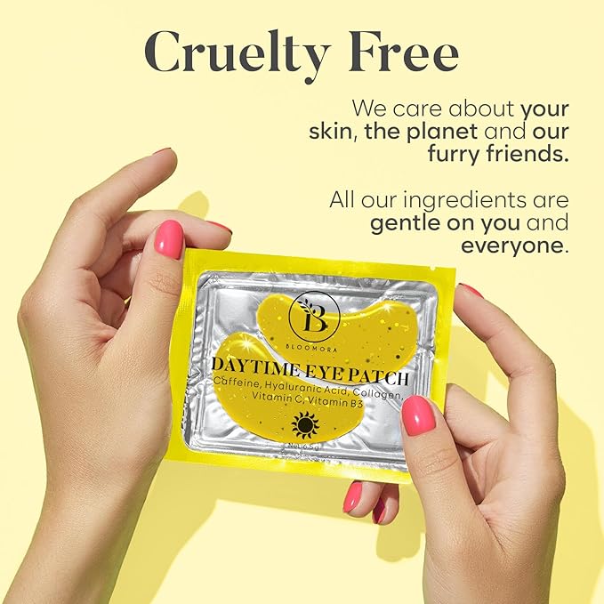 - DAYTIME EYE MASKS: Our daytime patches are infused with Caffeine (2-3 mg), Hyaluronic Acid, Vitamin C, Vitamin B3, and Hydrolyzed Collagen. The box contains 30 pairs of daytime under eye patches that help energize, de-puff, and brighten tired eyes for a refreshed look.