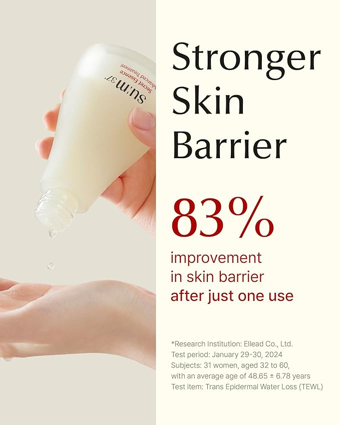 - SU:M37 SECRET ESSENCE (80ml/2.71fl oz + 30ml/1.01 fl oz) - This essence deeply hydrates and strengthens the skin's barrier, helping to enhance elasticity, smoothness, and natural vitality for a refreshed and youthful appearance.