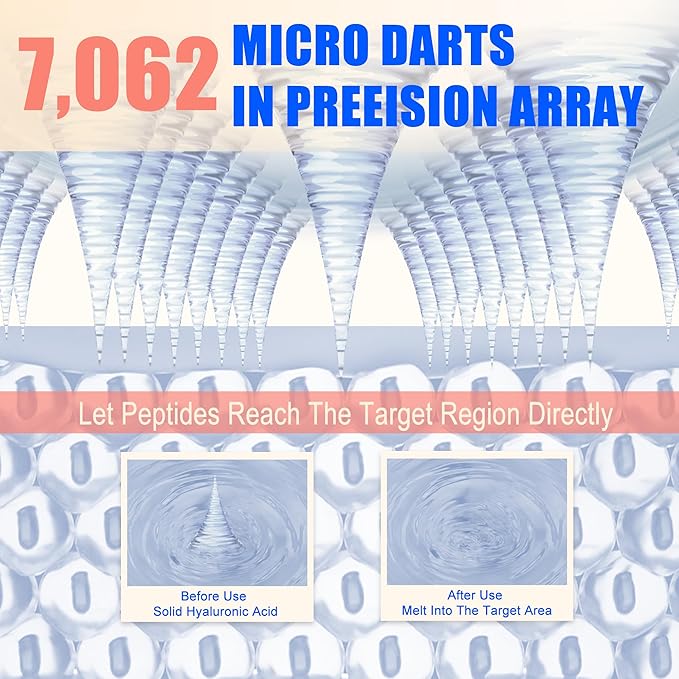 - 【Micro-Dissolving Stability Architecture】 Inspired by the structural stability of the Eiffel Tower, our micro-dissolving are shaped using micron-scale chip-carving technology. Each unit measures 280μm in length with a perfectly engineered top, ensuring precise delivery of Multi-Peptide and Hyaluronic Acid to targeted wrinkle zones for visible smoothing effects