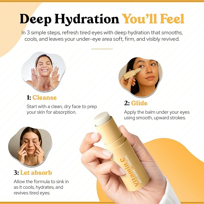 - ๐๐ข๐ญ๐๐ฆ๐ข๐ง ๐ ๐๐ฒ๐ ๐๐๐ฅ๐ฆ ๐๐จ๐ซ ๐๐ซ๐ข๐ ๐ก๐ญ๐๐ง๐ข๐ง๐ & ๐๐ฅ๐จ๐ฐ: This nourishing eye balm stick is powered by Vitamin C to help visibly brighten the under-eye area, reduce dullness, and boost your natural glow.